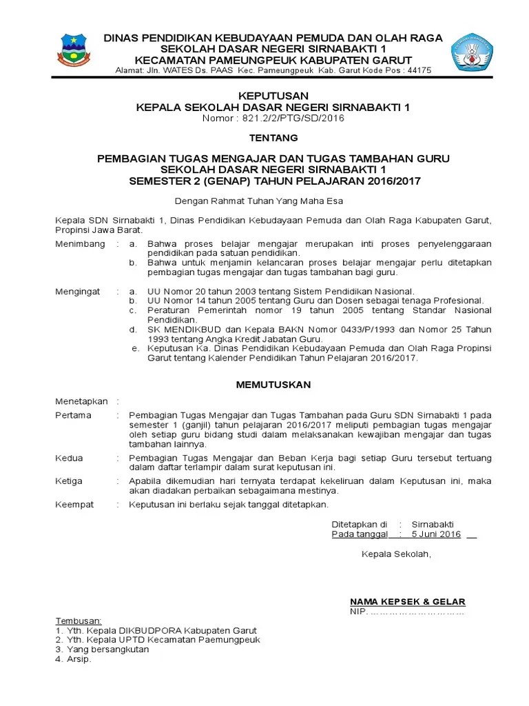 Diharapkan download contoh surat keputusan pembagian tugas mengajar tenaga pendidik guru paud (tk kb tpa sps) format doc ini merupakan salah referensi yang .